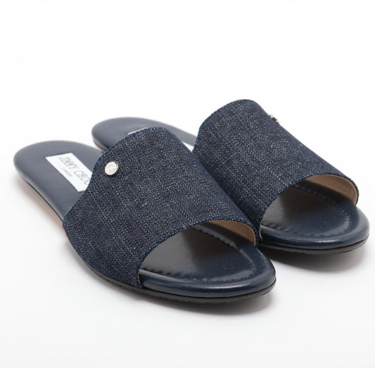 Jimmy Choo Nanda Denim Slides In Dark Denim NWB 36
