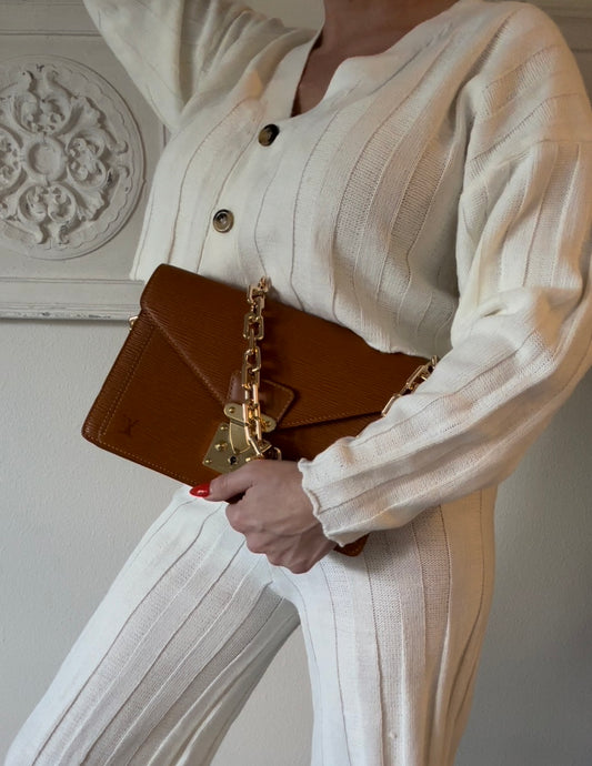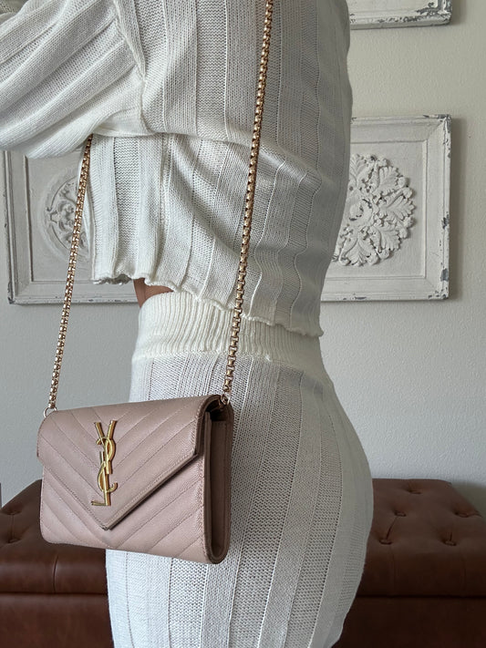 YSL Caviar Leather Flap Crossbody Purse Clutch WOC pink Gold