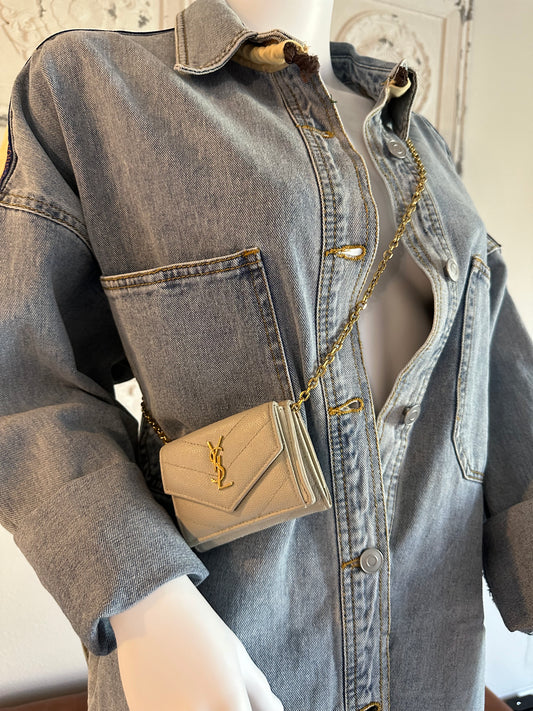Yves Saint Laurent Cassandra Wallet Caviar Tri- fold Small Wallet on chain