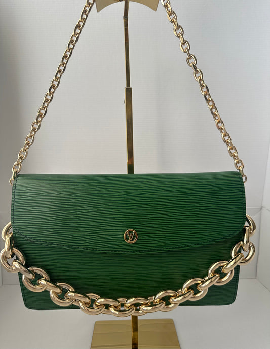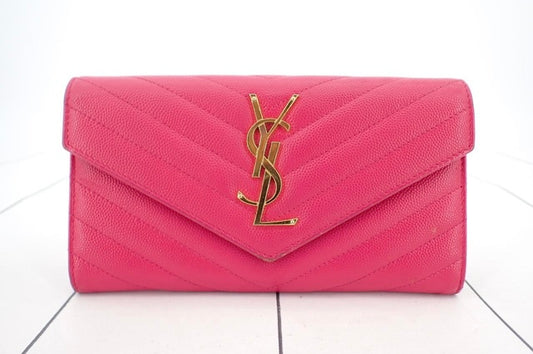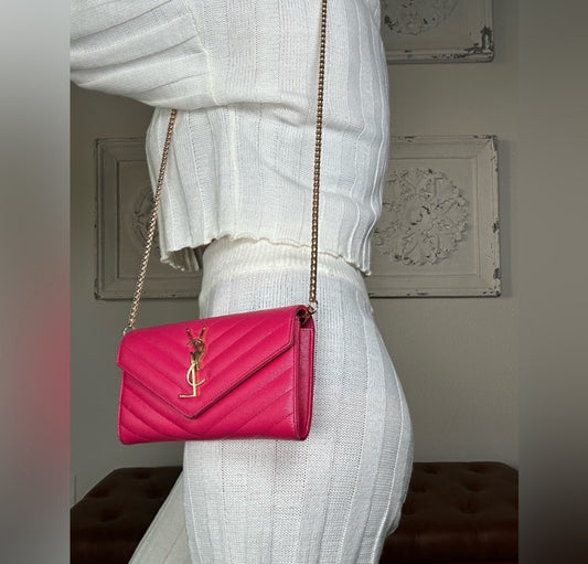 YSL Caviar Leather Flap Crossbody Purse Clutch WOC Hot pink and Gold