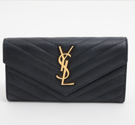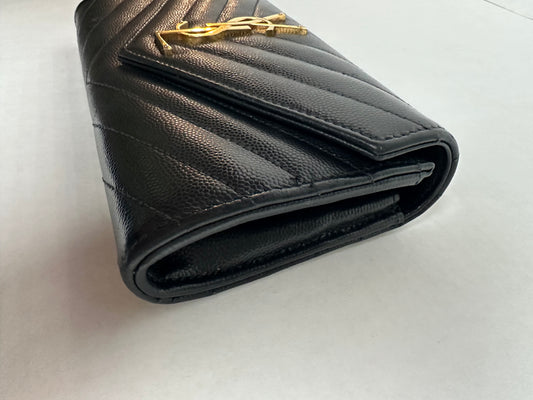 Yves Saint Laurent Caviar Chevron Quilt Leather Flap Crossbody Clutch Wallet