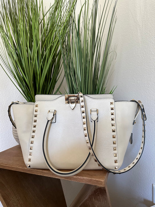 VALENTINO IVORY ROCKSTUD CROSSBODY SMALL TOTE BAG with strap