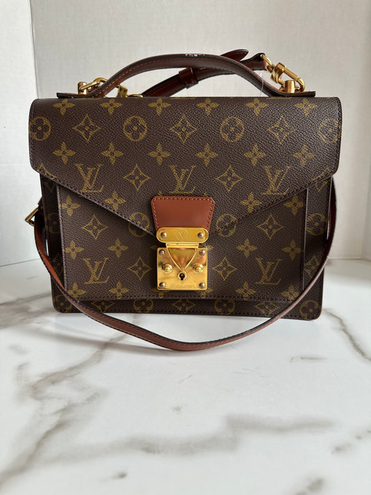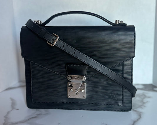 Available LOUIS VUITTON black Epi Monceau 28 Hand Bag 2way