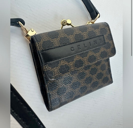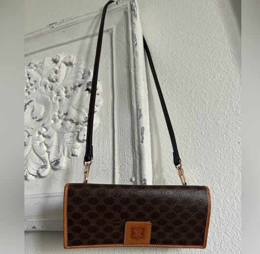 CELINE Triomphe Vintage Brown Macadam Long Bifold Leather Wallet on strap