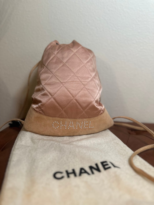 Chanel Vintage Quilted Satin and Suede Drawstring Backpack