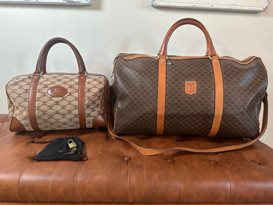 Celine Vintage Large Duffle Bag with strap, lock and key