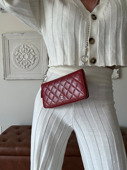 Chanel Quilted Lambskin Zip Around Wallet red WOC