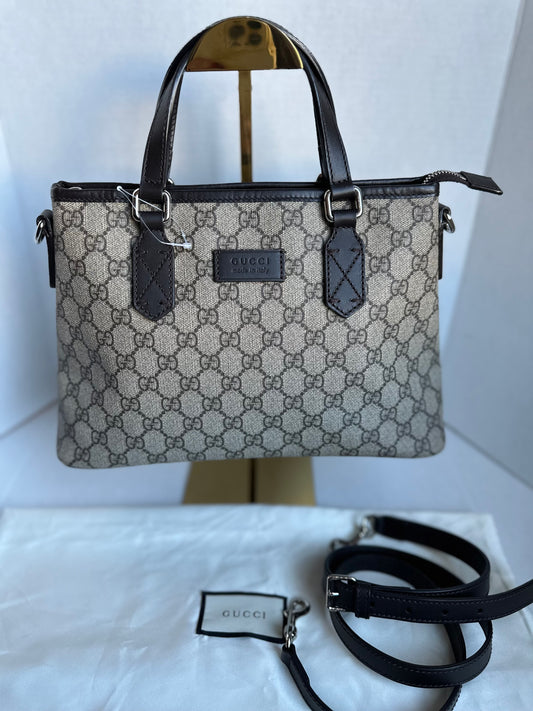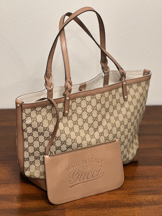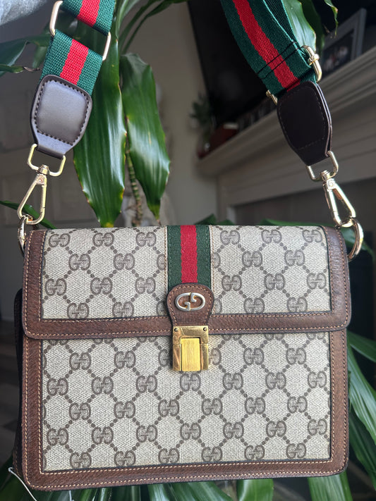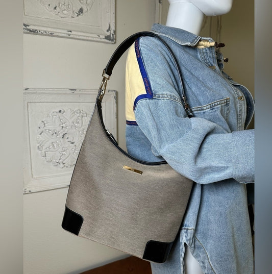 Gucci Canvas and Black Leather Hobo Shoulder Bag Vintage