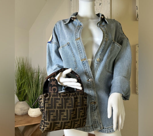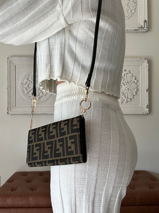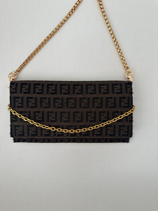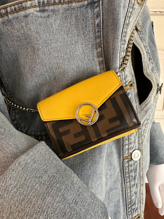Fendi Zucca Monogram Mini Compact Wallet in Silver Hardware on chain