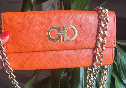 Ferragamo Wallet Ganchini Orange Gold crossbody