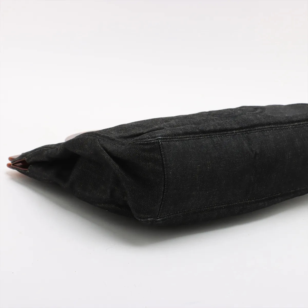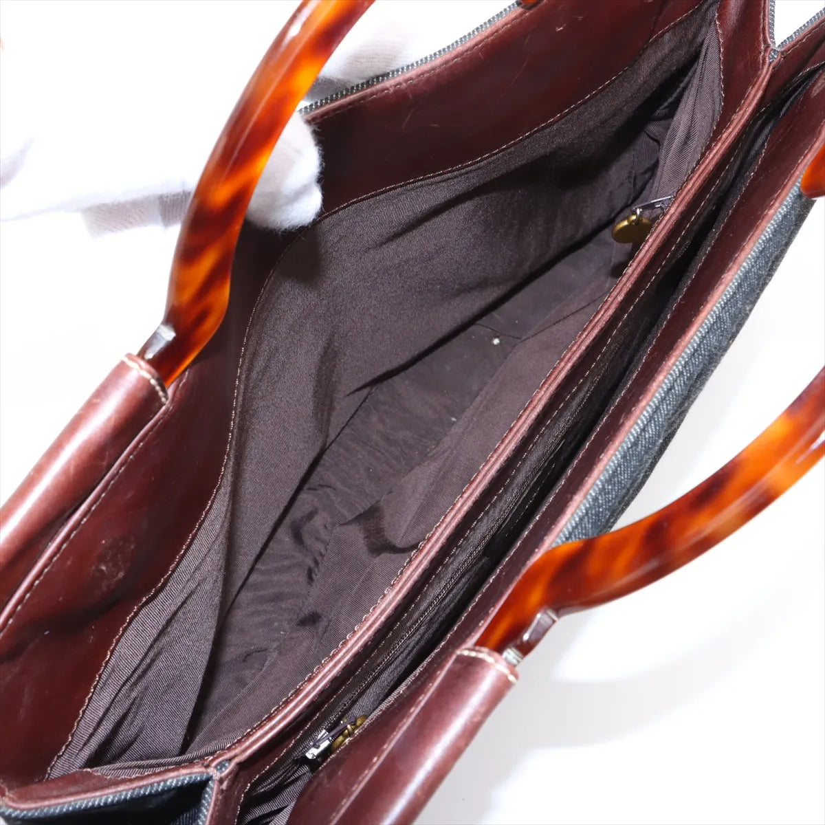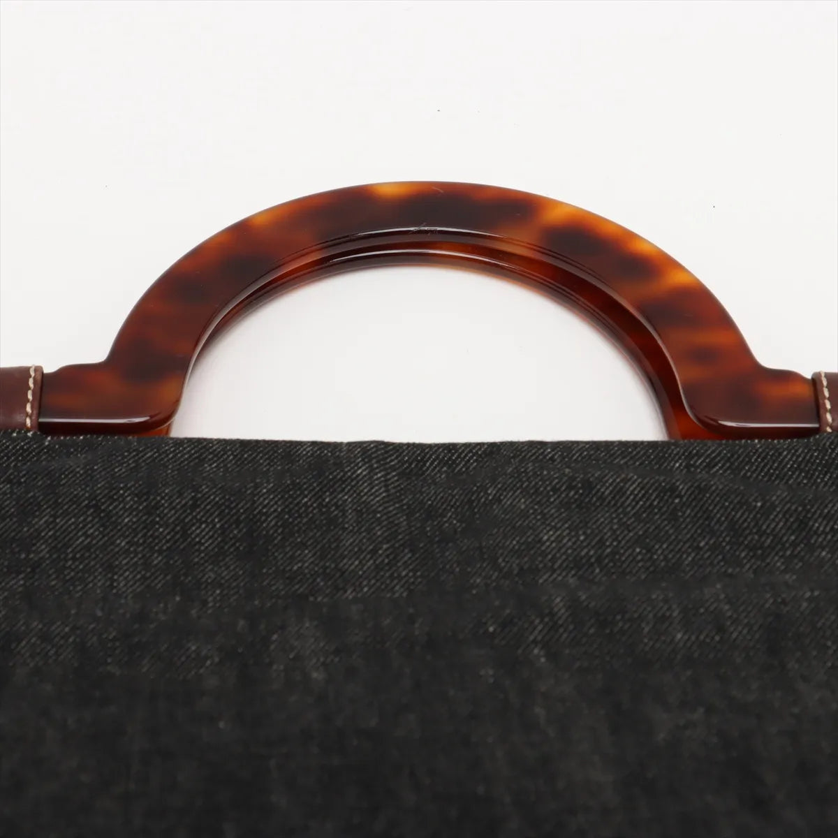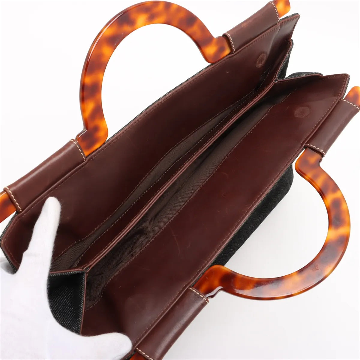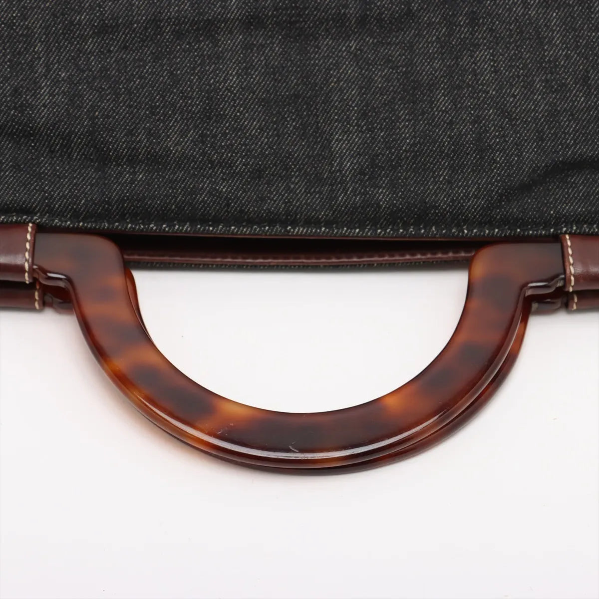 Chanel Coco Mark Denim Hand bag tortoiseshell Black Gold Metal Fittings