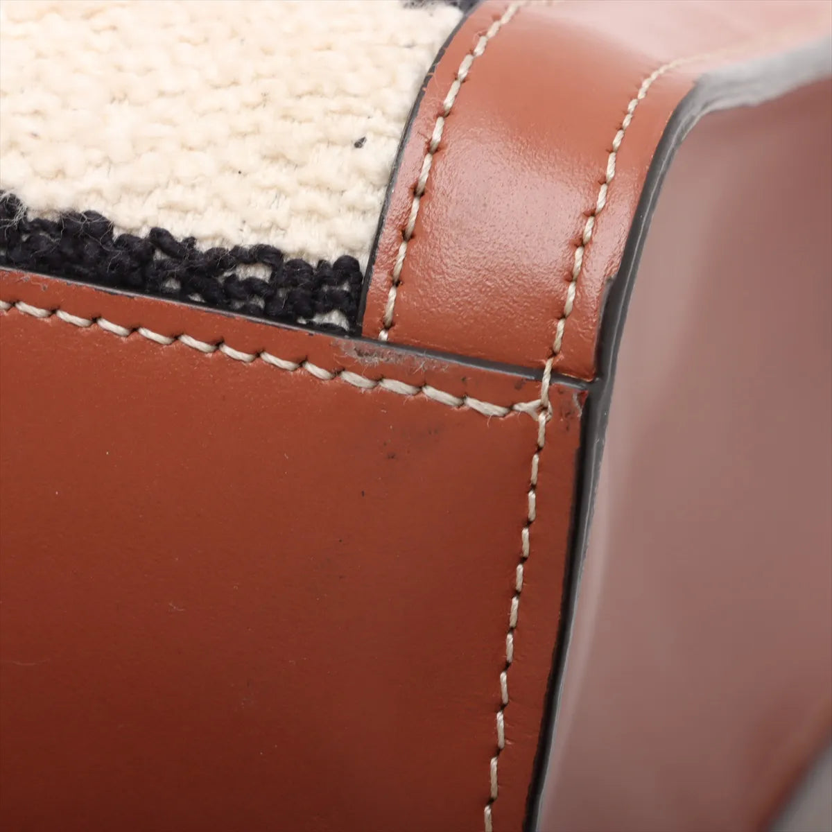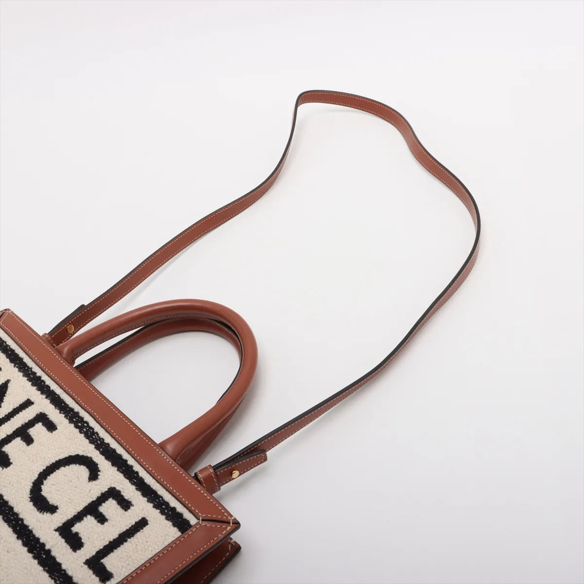 Celine Vertical Cabas fabric x leather 2 Way Handbag Beige x brown